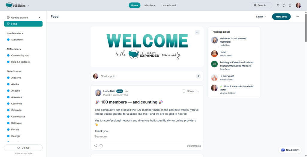 Therapy Expanded is a clinician-led professional networking community designed specifically for providers navigating telehealth, multi-state licensure, and interstate referrals.